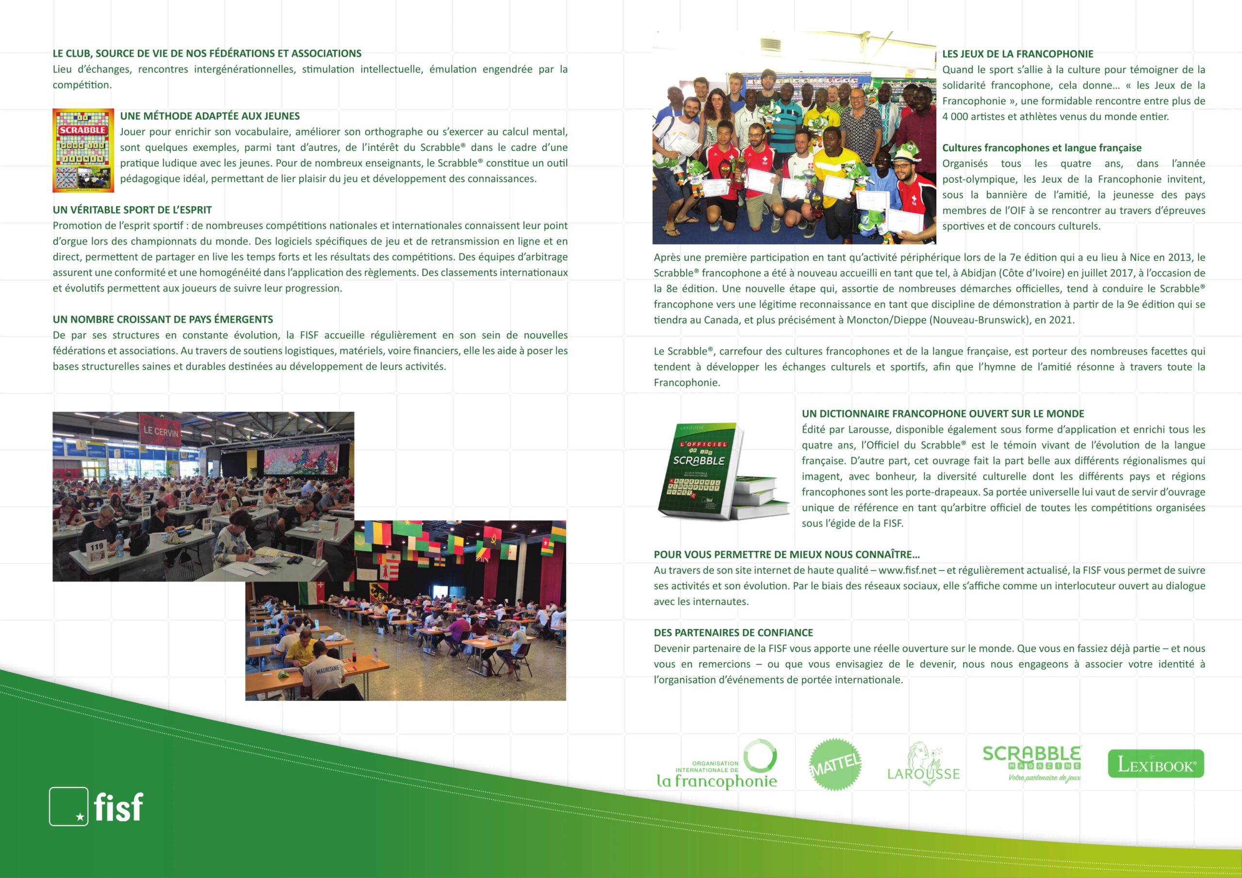 Plaquette promotionnelle de la Fédération internationale de Scrabble® francophone (FISF)